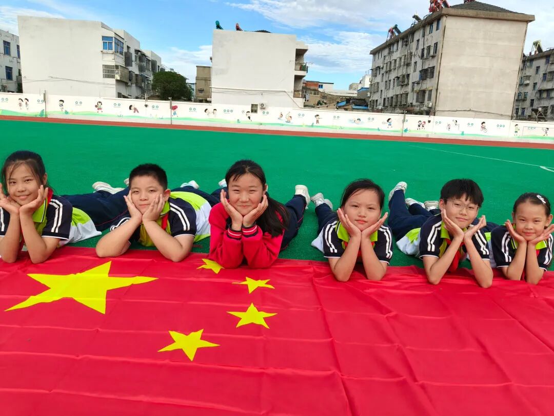 今天,祖国繁荣,民族团结,人民幸福。同学们或行礼或举国旗与国旗合影,诠释着对祖国的衷心祝福。