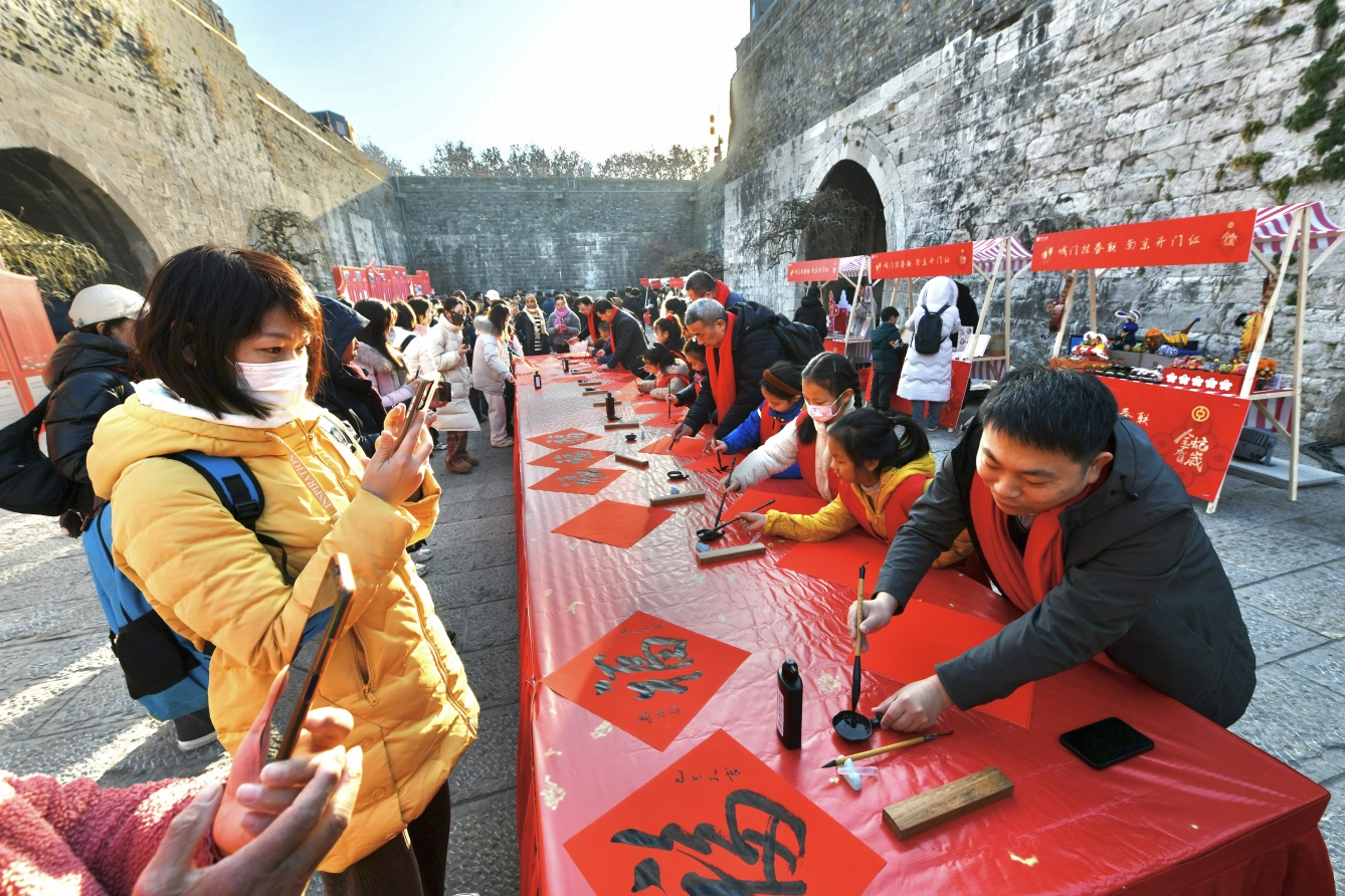 2025年1月18日,第十季“城门挂春联 南京开门红”揭联仪式在中华门隆重举行,活动现场书法家为市民送“?!弊?。