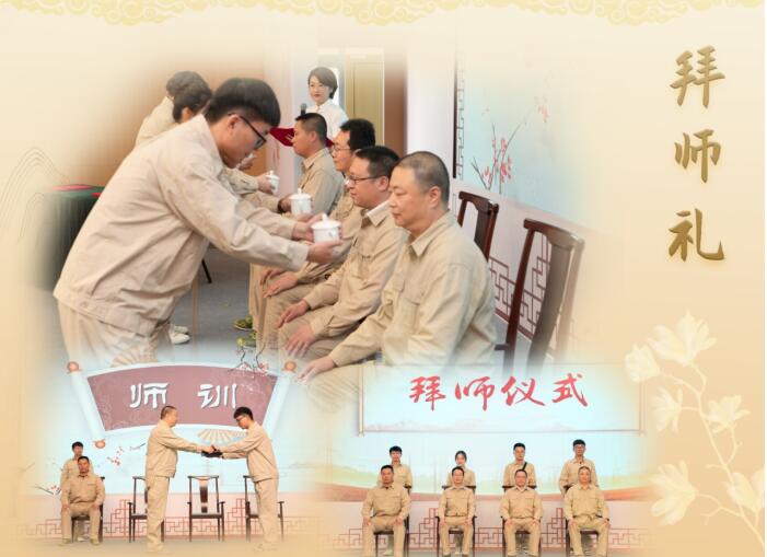 “拜师礼”做好技能经验赓续“传帮带”。拜师礼定位为入职满一年的青年职工签订师徒协议确立师徒关系的仪式,弘扬尊师重道的传统美德。仪式环节分为投帖、敬茶、签约、师训四个步骤。投帖,请师父上座,徒弟向师父递交拜师帖;敬茶,徒弟对师父“三敬茶”,一方面表明师父需要考验徒弟,另一方面提醒徒弟对师父的态度要恭敬,举止要合适,求学要锲而不舍;签约,在仪式司仪见证下,师徒签订合约;师训,师父准备一件有寓意的物件,送给徒弟,并对徒弟进行训诫,促进专业技艺传承落细落实。