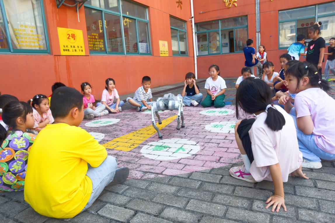 “共振环”的嗡嗡声、“机器狗”的灵活舞步,更是让校园充满欢笑声,孩子们围在周围,模仿机器狗的姿势,志愿者则耐心讲解传感器如何让机器狗“听话”。而在“八皇后”趣味数学区,几个爱思考的孩子正拿着棋子尝试排列。最特别的是“保尔加利正方形”展台,孩子们将四块“缺角”的板块拼成正方形,再加入一块小正方形,竟依然能严丝合缝。“这是视觉错觉的小技巧,其实藏着巧妙的空间?!敝驹刚叩慕步?,让孩子们对图形奥秘充满好奇。