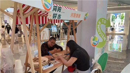 “刚开始用力不均匀,颜色就有深浅,多尝试几次就好了?!痹诜且糯硇源腥说闹傅枷?,市民沉浸式体验了河阳烙画的魅力。一幅幅色彩鲜艳、充满乡村气息的农民画,以独特的艺术魅力吸引市民的目光。来自连云港赣榆区石桥镇官庄小学“张闻明乡村学校少年宫”的学生诗歌、钉线画展,也引来大家纷纷驻足欣赏。