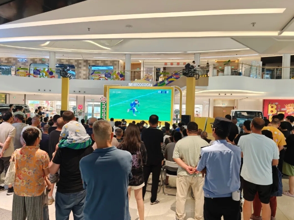 当晚,江阴市内众多商场、景区、户外广场设置直播观赛大屏和观赛座位,打造集观赛、美食、互动娱乐于一体的“苏超”第二现场。