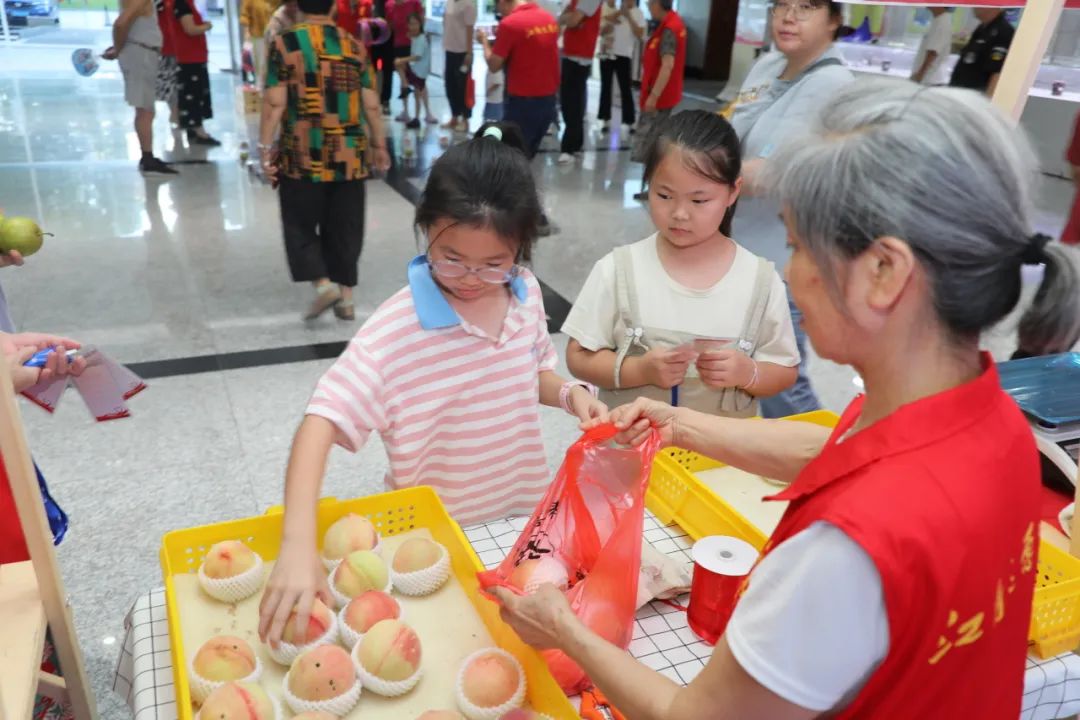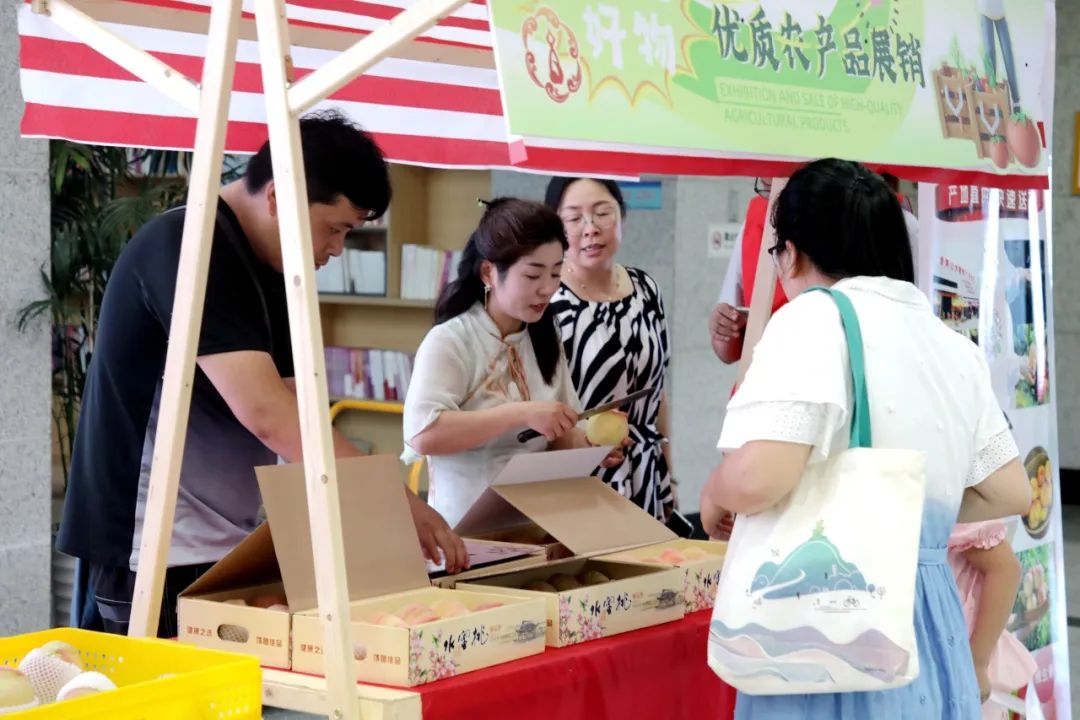 “水蜜桃一口爆汁,比糖还甜!”“脆冠梨清爽解暑,我要带两箱回家!”展台前,市民们边品尝边点赞。