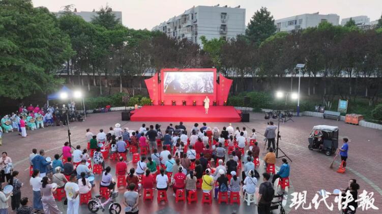 银发族活力四射的舞姿与经典红歌碰撞出新时代的火花,点燃全场气氛;宣讲员陈露动情讲述《抗日老人杨凤鸣:五步之距,家国永念》的悲壮故事,让不少人悄悄红了眼眶;京剧《红灯记》选段的清亮唱腔刚落,孩子们朗诵《少年中国说》的稚嫩嗓音便接了上来,“少年强则国强”的铿锵,惊飞了枝头晚栖的鸟儿;歌伴舞《绣红旗》的水袖翻飞,阮重奏《边疆处处赛江南》的婉转,男声合唱《弹起心爱的土琵琶》的豪迈……老中青幼同台的演出里,家国情怀随音符流淌,晚风裹着掌声飘出很远。