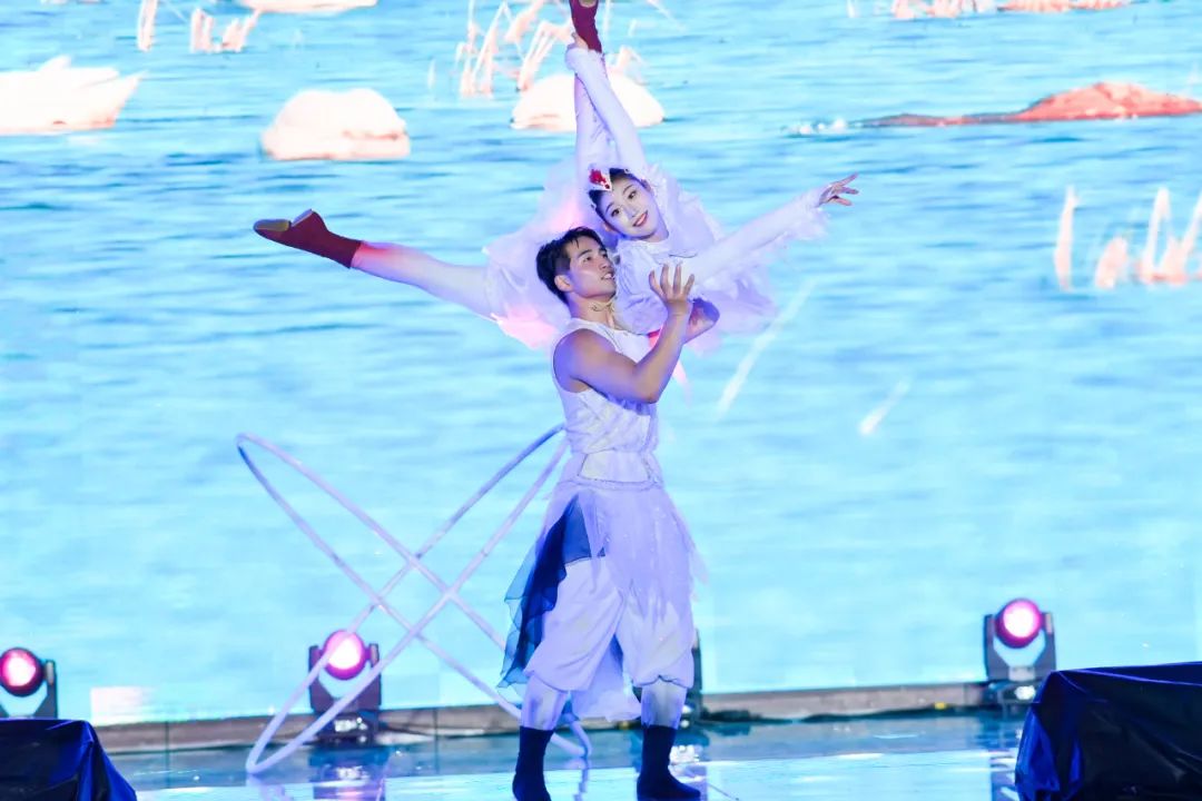 江苏省杂技团带来《天鹅湖韵》,演员们的精彩演绎为现场观众带来一场力与美、刚与柔完美交融的视觉盛宴,也展现了盐城人追求卓越、勇攀高峰的时代华章!