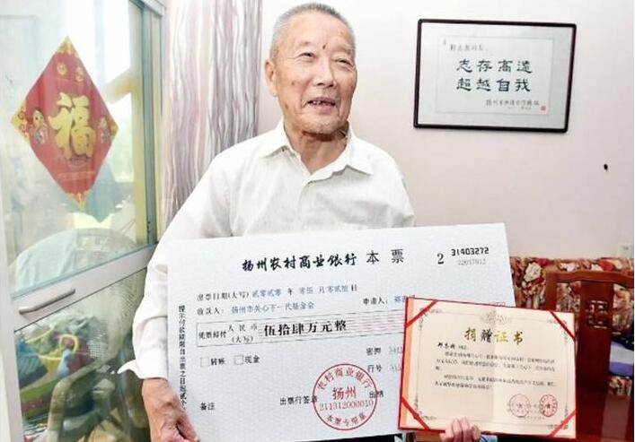 “夫人几年前也先走了。 没有了牵挂,党和国家把我照顾得很好,积蓄和房子真正成了身外之物,我要把我的一切回报给党和组织,回报给社会?!敝V境霸怠?020年5月26日,郑志超在公证人员的见证下,将唯一一套住房的售房款共计54万元,全部捐给了扬州市关心下一代基金会?!拔倚∈焙蛎挥星?,读不起书,希望现在的孩子能够生活得好,能够读上书,将来有文化,成为国家的人才?!闭饩褪抢先说墓⒐⒊跣摹?/p>