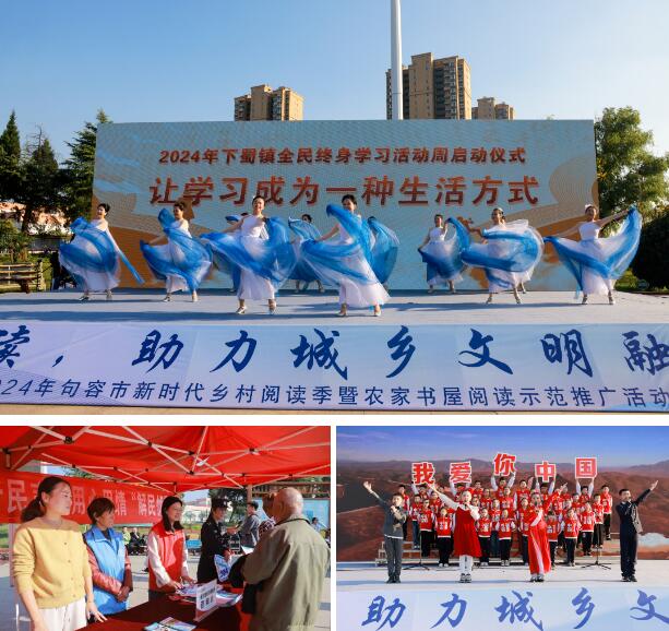句容下蜀镇新时代文明实践所组织开展“阅读,助力城乡文明融合——2024年句容市新时代乡村阅读季暨农家书屋阅读示范推广活动”,活动还穿插了全民阅读知识和党史知识问答环节,使得整场活动氛围更加热烈,流动图书馆、健康义诊、图书捐赠、非遗和民间手工展示、农产品展示、法治宣传区……多个便民公益服务摊位在集镇文化广场热闹“开张”,接地气的便民服务吸引了众多群众参与打卡,为大家带来了丰富多样的体验。