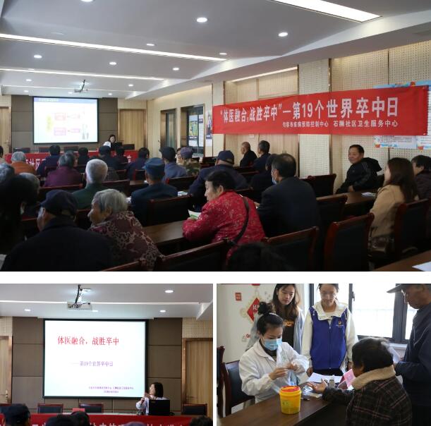 句容市疾控中心联合石狮社区卫生服务中心在黄金花园党群服务中心,开展了预防卒中的健康教育宣传活动?;疃殖。ㄉ缜郎裰行牡母痹撼ふ沛梦用衩谴戳艘怀∩涤玫慕沧?。医护人员为居民们提供了免费的血压和血糖测量服务,他们根据测量结果提供了针对性的健康指导,帮助他们更好管理自己的健康状况。
