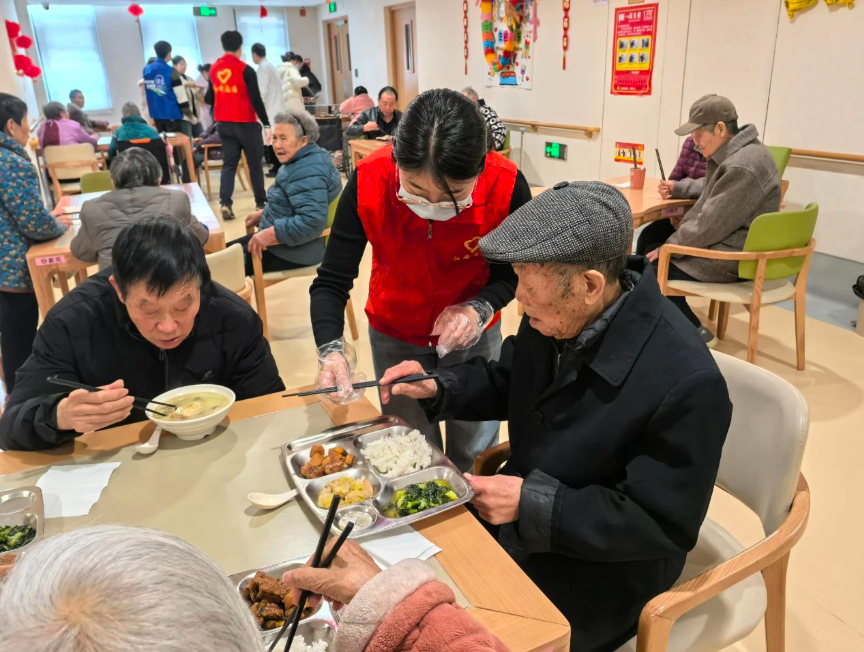 江阴-靖江工业园区江峰村新时代文明实践站组织志愿者、医务人员,走进龙信乐颐荟·龙馨园康养社区,开展敬老助老新时代文明实践活动。志愿者和医务人员分工有序,为老人量血压、测血糖,询问日常用药及身体状况,并细心记录,“一人一档”建立健康档案,为后续跟踪服务提供依据。就餐时间,志愿者们化身“助餐员”,提前为行动不便的老人整理餐桌,分装饭菜。餐后,志愿者还帮助清扫活动室、整理房间,让老人们住得更舒心舒适。“孩子们陪着我们边吃边聊,就像自家孙辈一样贴心?!蹦旯搜男炷棠汤胖驹刚叩氖至锌?。