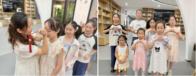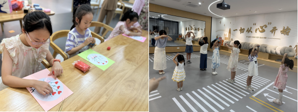 活动以“八礼四仪”传承为重要抓手,设置“七夕习礼,童行四仪”体验环节。在家长协助下,孩子们用温水净手,以“洗净尘埃,心向纯净”的寓意践行“仪表之礼”,树立洁净自律的行为准则;亲手绘制“感恩卡”,向父母、邻里传递真挚祝福,将“交往之礼”融入情感表达,现场氛围温馨和睦;工作人员示范传统揖礼,指导孩子们向长辈、邻居恭敬问好,让“待人之礼”在互动中落地生根,帮助未成年人在实践中感悟传统礼仪魅力,厚植“感恩、敬亲、友爱”的道德根基。