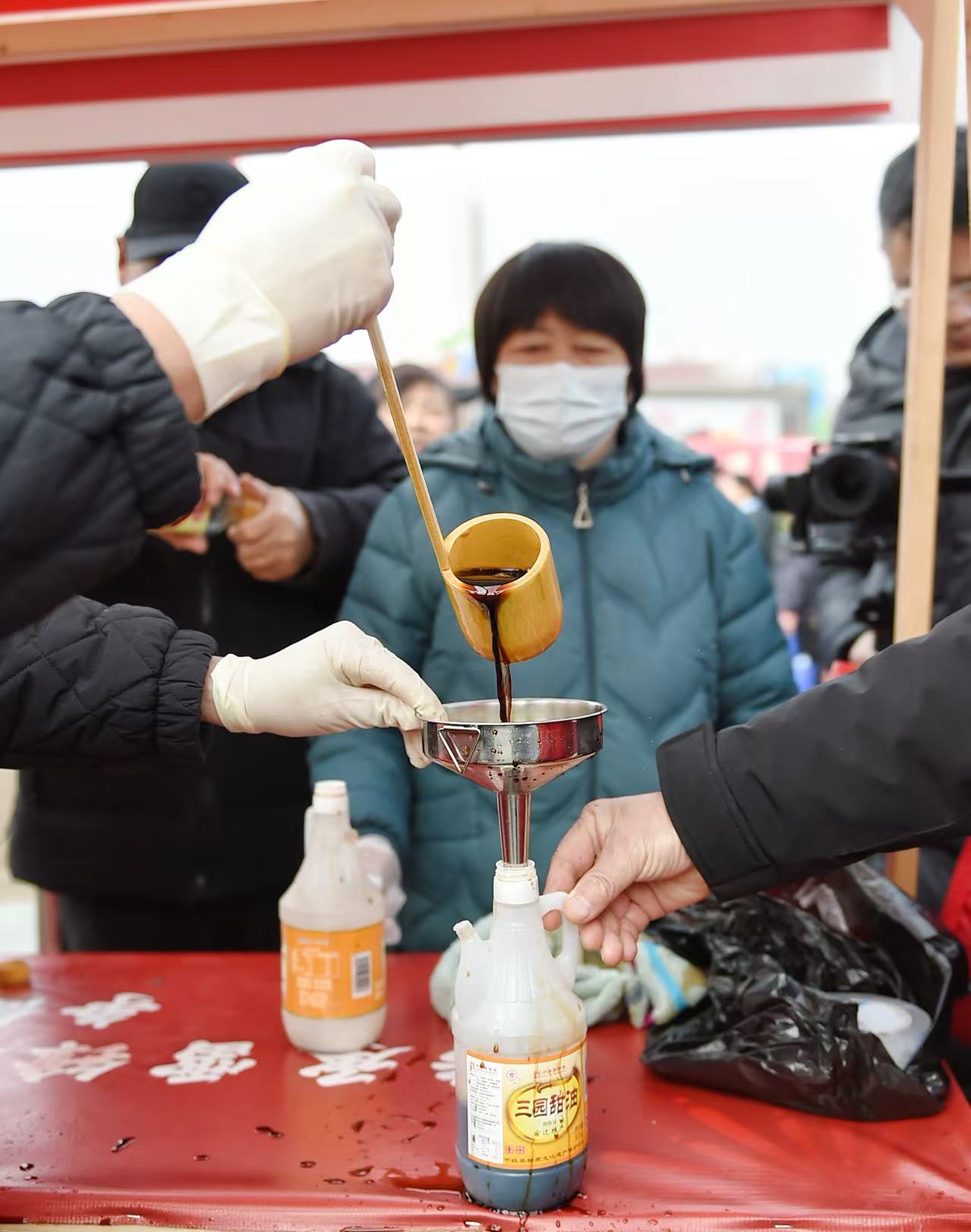 在一口颜色红亮、酱香浓郁、鲜味十足的甜油缸前,闻香而至打酱油的人群早就拐了几个弯,蜿蜒几十米。