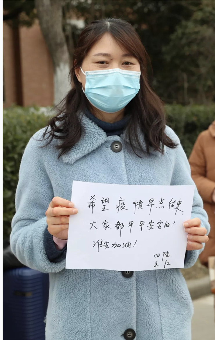 “我请求参战!”在得知淮安第四人民医院准备组建新冠肺炎医疗救治梯队后,王红第一时间报名,并在请战书上郑重地写下了自己的名字。她不仅第一个冲锋在前,也做到了一个战士应该做的一切。她走出隔离病房后的第一句话就是:“随时需要,随时再回前线!”