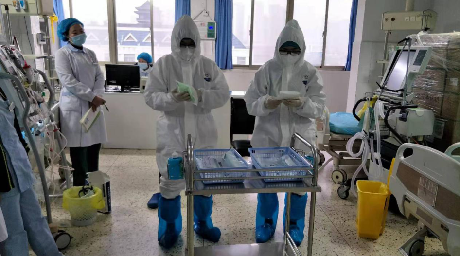 淮安第四人民医院医患办副主任冯主任也是第一梯队医疗救治组成员,之前在ICU和王红共事过几年。他说王红平时很敬业,很用心,对护理要求很严格,很多事情先抢着做,带教也很用心、耐心。只要在她团队共事过的同事都很佩服她。