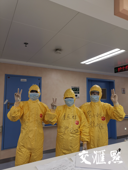 就这样,虞乐群第一天进隔离病房就整整呆了6小时,在这6个小时里,她和同事们一共收治了28名新冠肺炎重症患者。下班后,她把自己第一天去病房的感受和自我调适的方法及时告知每一位队员并且鼓励他们说,“我这个60后都可以撑过来,你们80后、90后,一定没问题的!”