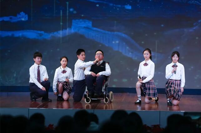 龚铖同学(右三)表演诗朗诵《月光下的中国》