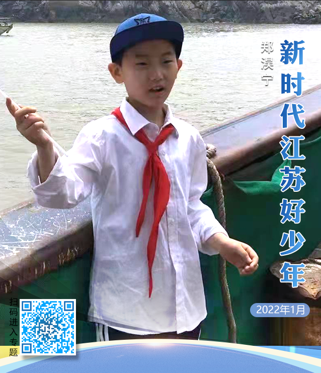 郑淏宁,男,2010年8月出生,连云港市解放路小学六(15)班学生。郑淏宁学习刻苦、成绩优异,年年被学校评为“三好学生”。他乐于助人、热心公益,利用假期和朋友们一起参加义务执勤、文明城市创建、垃圾分类等公益活动,为市特助学校的孩子们捐赠学习用品、课外读本等。2018年,郑淏宁从电视中了解到王继才爷爷和王仕花奶奶“32年守护祖国边陲小岛开山岛”的事迹,决心要将家乡这片红土地上的红色故事告诉更多的人。3年来,他先后跟随家人登上开山岛13次,将自己在岛上的所见所闻、所思所想融入到故事中,为同学们讲述“家就是岛、岛就是国”等红色故事150余场。在他的带动下,越来越多的同学加入这支“宣讲小队”。郑淏宁说,小时候最爱听“小喇叭讲故事”,希望自己也能成为传播家乡红色故事的“小喇叭”。
