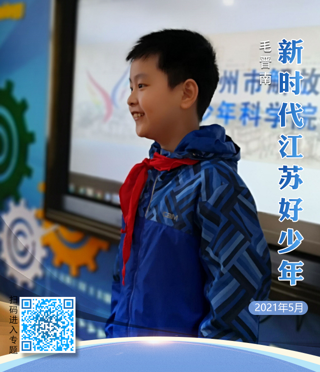 毛晋南,男,2011年7月出生,常州市解放路小学四(10)班学生。毛晋南勤奋好学、积极上进,学习成绩一直名列前茅,每学期都被评为?!敖鹕艄馍倌辍?。毛晋南喜欢科学、善于思考,积极参加机器人项目训练、科技小发明等活动,曾在第17届全国中小学信息技术创新与实践大赛、第六届全国青少年创意编程和智能设计大赛等各类科技赛事中取得好成绩,被聘为?!翱蒲≡菏俊?。他带着其他“小院士”们,一起筹备科技公开课,参加科普公益活动,将所学的知识传递给同龄人,是学校有名的“科普宣传员”。他希望通过自己的努力让更多小伙伴们拥有“科技梦”,一起在追逐梦想的道路上携手并进、勇敢奔跑。